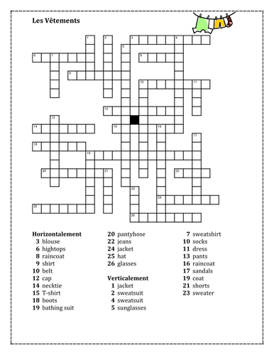 Vetements Clothing In French Crossword Teaching Resources